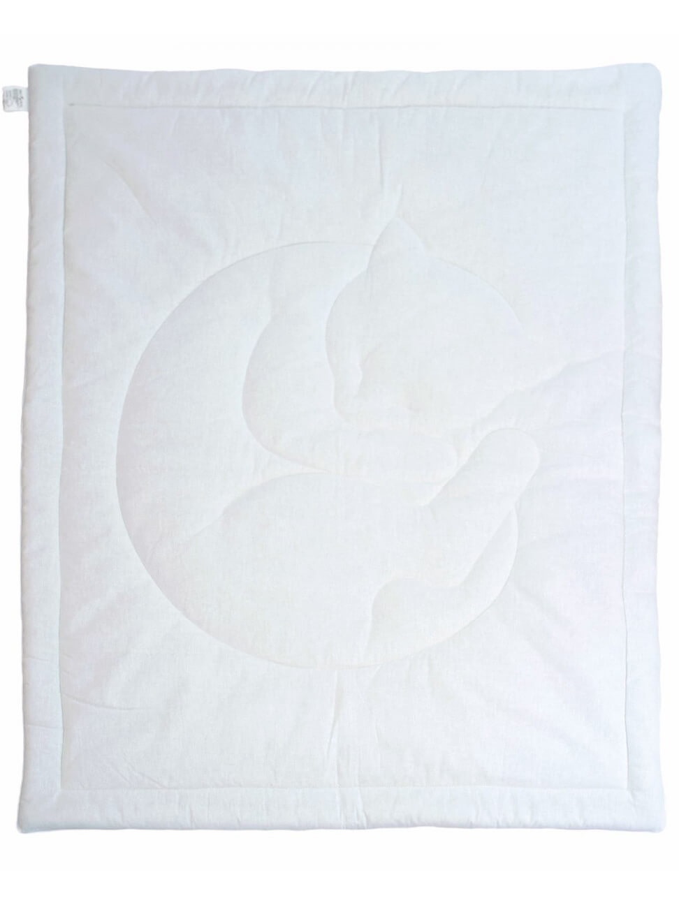 Теплое и воздушное одеяло для прохладного времени года. С ним малышу захочется так сладко уснуть, как котенку на оригинальном рисунке стежки.