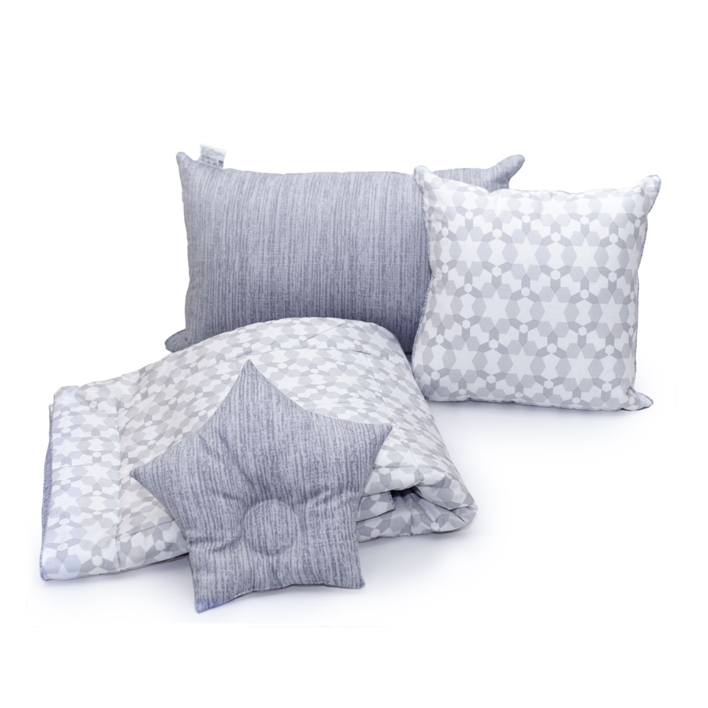В коллекции «Star» представлены: одеяло с поясом 110х140, подушка анатомическая «Звездочка», подушка 40х40, подушка 40х60.