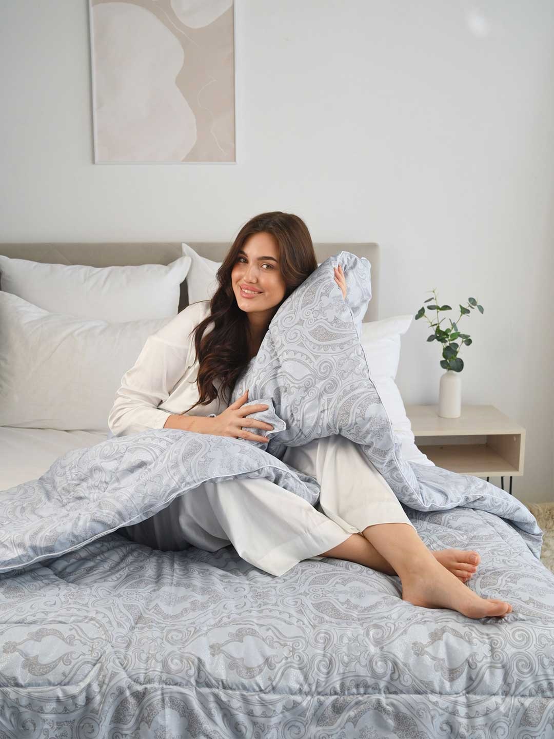 Козий пух, входящий в состав наполнителя кашемир, являясь экологически чистым натуральным материалом, способствуют комфортному расслабленному сну.