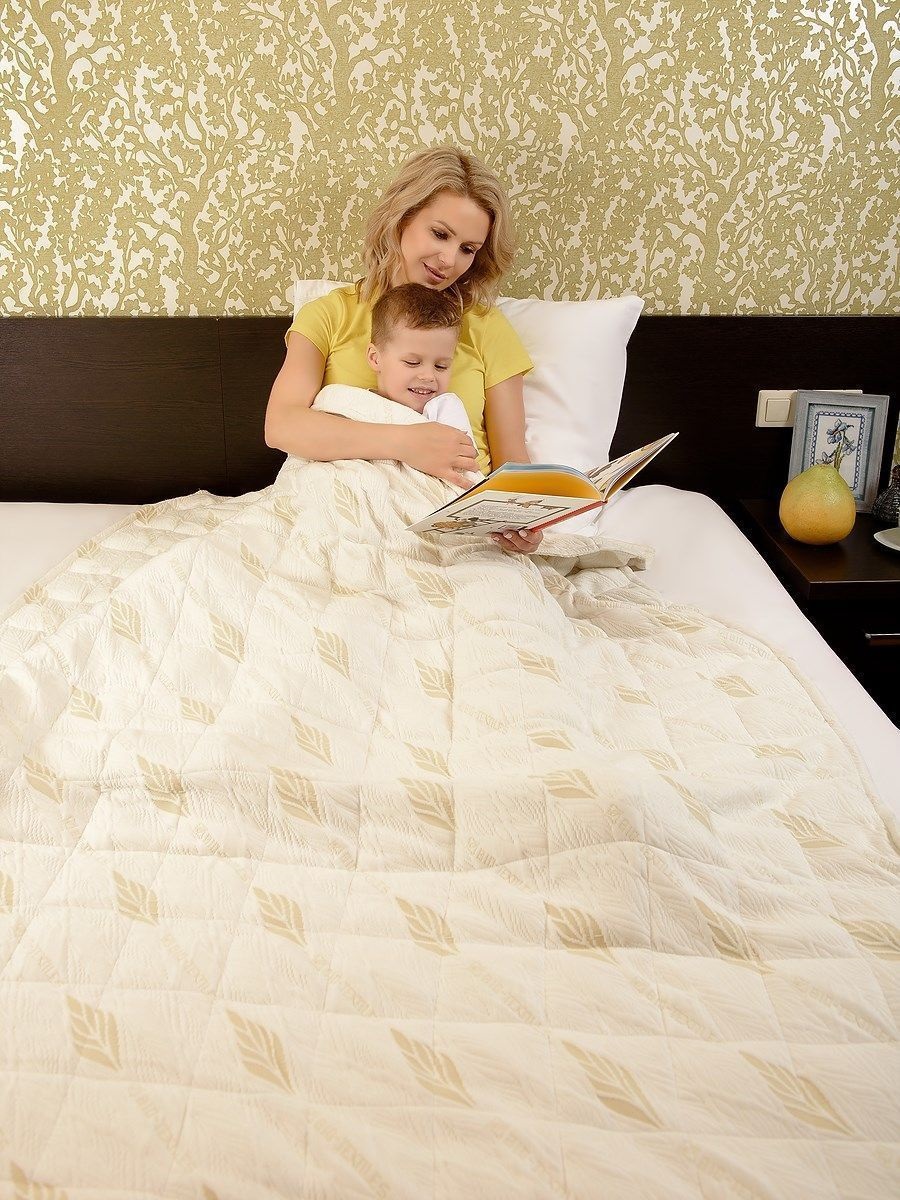 Благодаря такой конструкции наполнитель не сбивается, а его вес равномерно распределяется по всей поверхности одеяла, оказывая мягкое давление на тело.