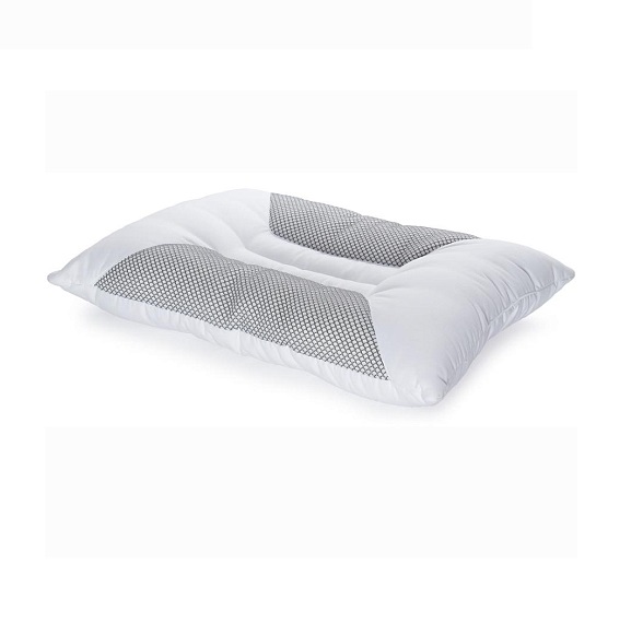 Подушка анатомической формы, с уплотненным большим валиком для шеи и комфортной выемкой для головы.