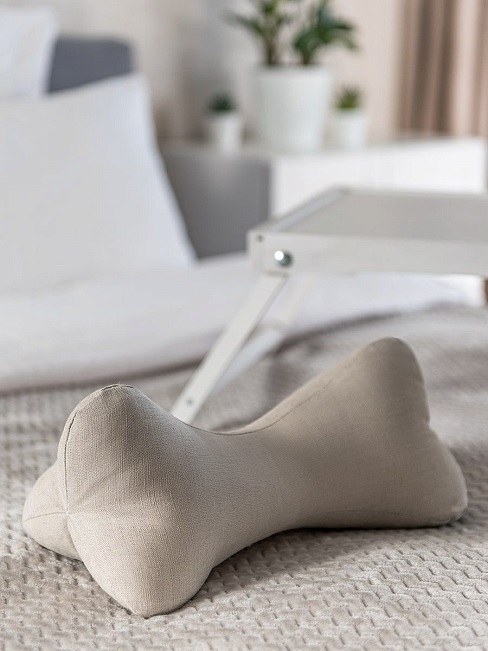 Подушка в виде косточки пользуется популярностью за счет своей формы, которая позволяет подушке не перекатываться и не сминаться.
