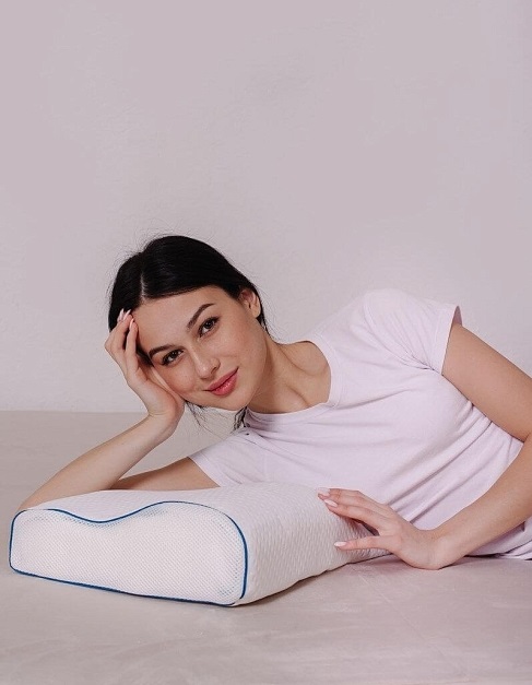Благодаря эргономичной форме и эластичности подушка мягко поддерживает шею в правильном положении, снимает напряжение с мышц шеи и плечевого пояса, улучшает кровообращение и нормализует дыхание.
