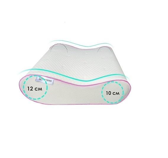 Подушка имеет эргономичную форму с валиков по краям, благодаря этому вы можете выбрать комфортное положение головы. Подушка выполнена из высокоэластичного полиуретана с эффектом памяти, поэтому она точно принимает форму тела и не оказывает давление на кровеносные сосуды.