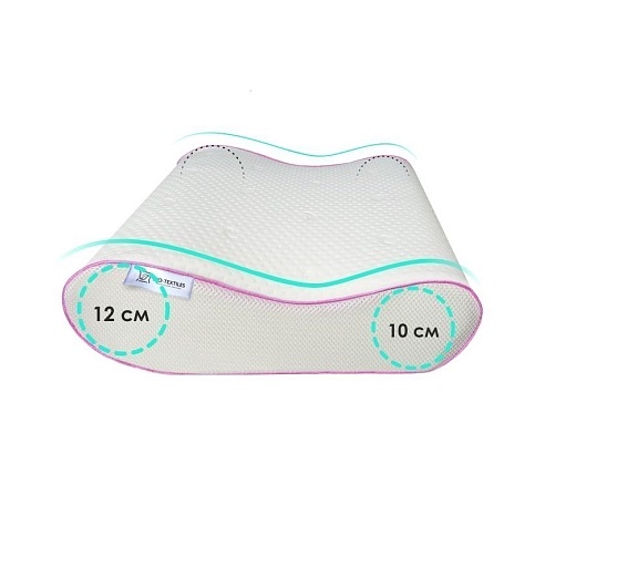 Подушка имеет эргономичную форму с валиков по краям, благодаря этому вы можете выбрать комфортное положение головы. Подушка выполнена из высокоэластичного полиуретана с эффектом памяти, поэтому она точно принимает форму тела и не оказывает давление на кровеносные сосуды.