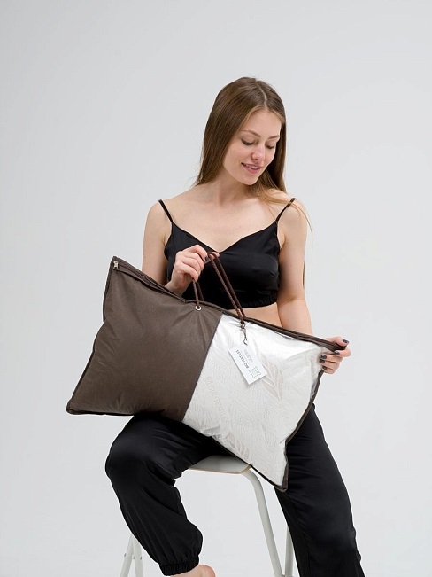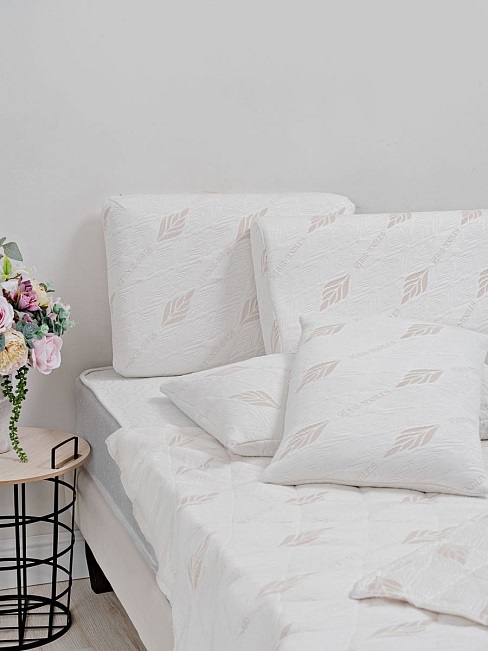 Внешний чехол на молнии изготовлен из мягкой ткани с вискозой (бамбуком), внутренний — из прочной бязи (в размере 50*70) и плотного спанбонда (размер 40*60).