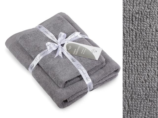 Набор махровых полотенец без бордюра (2 шт.), 420 гр/кв.м, 50х80см и 70х130см, Темно-серый