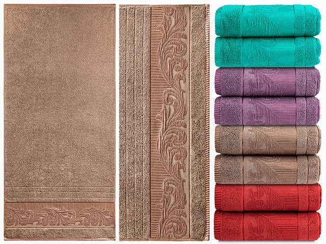 Полотенце махровое гладкокрашеное жаккардовое, 100% хлопок, Волна, 420 гр