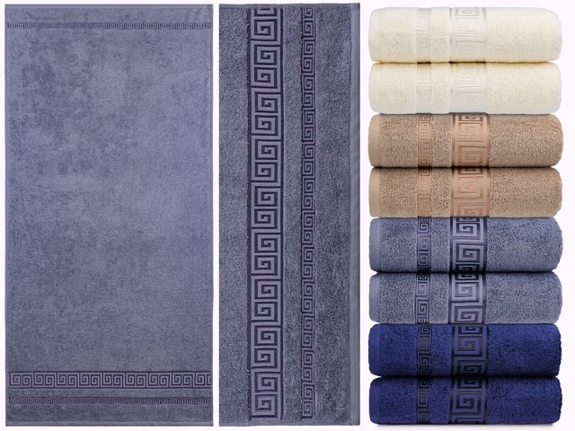 Полотенце гладкокрашеное жаккардовое махровое, 100% хлопок рис.Греческий узор, плотность 430 г/кв.м.
