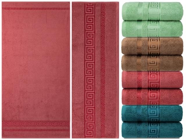 Полотенце махровое "Греческий узор", плотность 430 г/кв.м, 100х150см, Темно-розовый