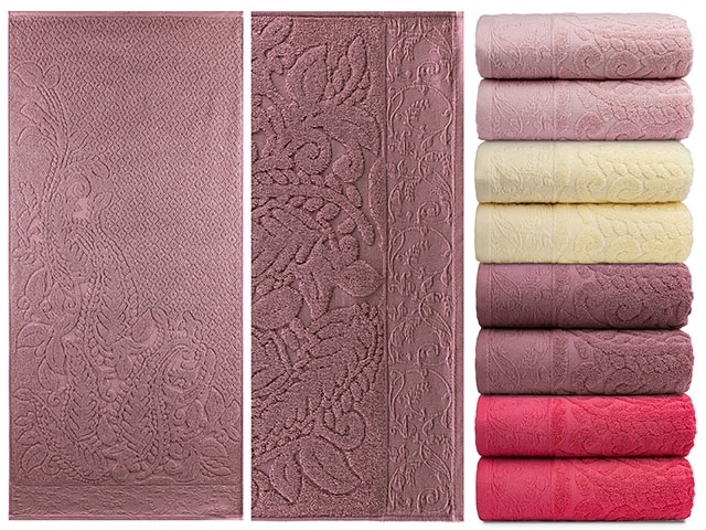 Полотенце махровое "Греческий узор", плотность 430 г/кв.м, 100х150см, Темно-розовый