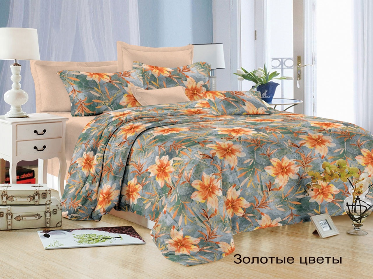 Комплект постельного белья 1,5 спальный Satin Collection, Золотые цветы