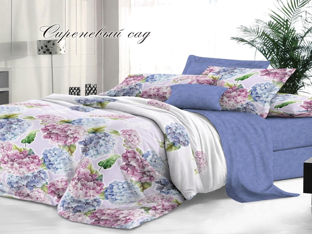 Комплект постельного белья Евро "Sateen De Luxe" Эльф, Сиреневый сад