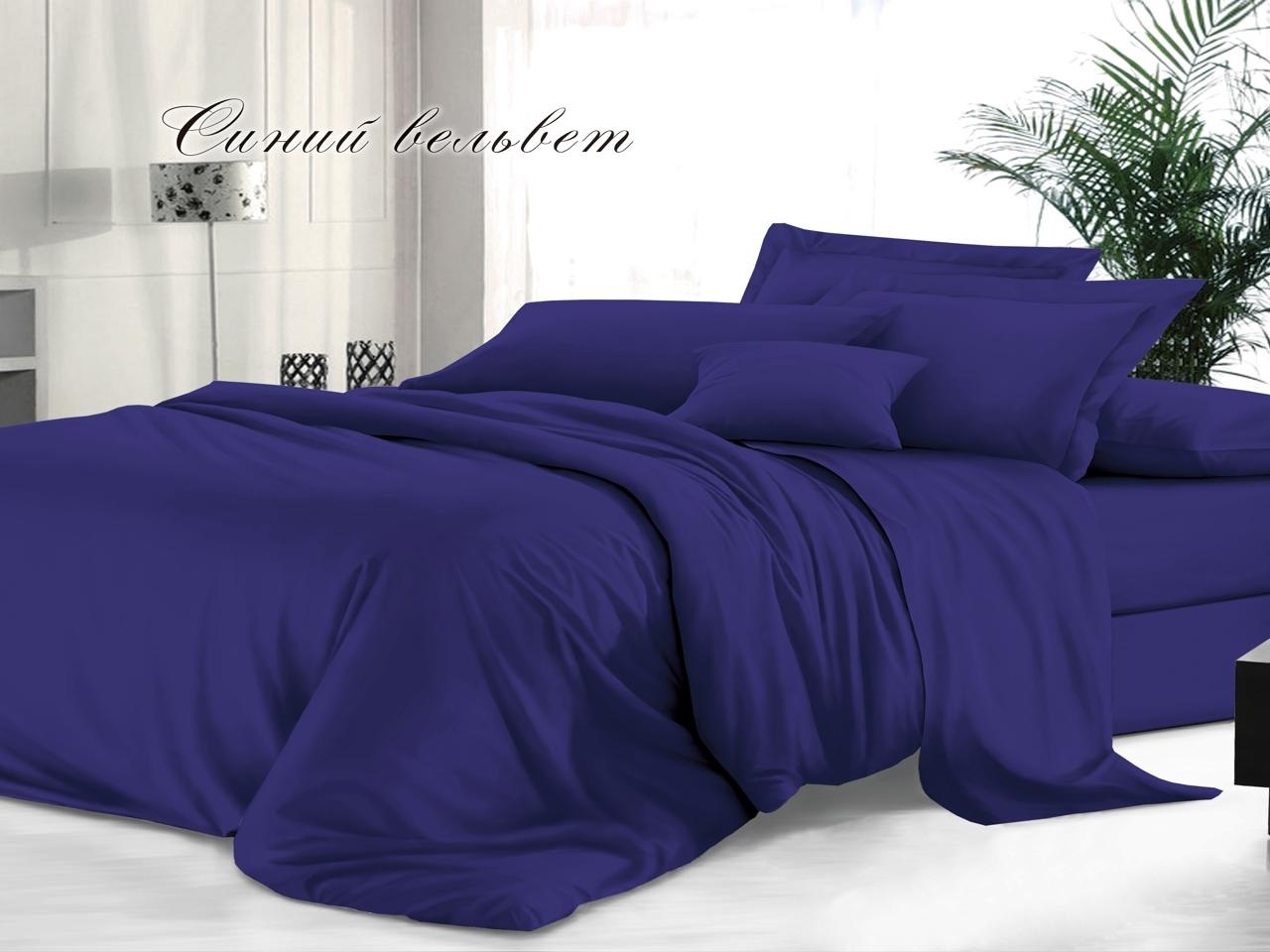 Пододеяльник "Евро" 200х220см, гладкокрашеный сатин, Синий вельвет