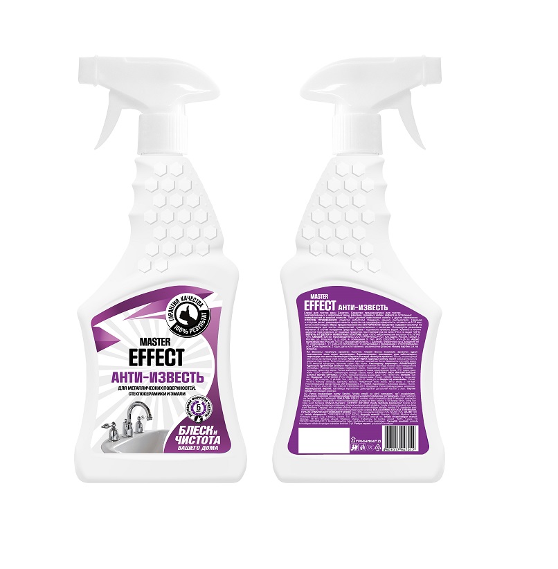 Спрей Master Effect Анти-известь предназначен для чистки эмалированных и акриловых ванн, душевых кабин, кафеля и остальных поверхностей в ванной комнате.
