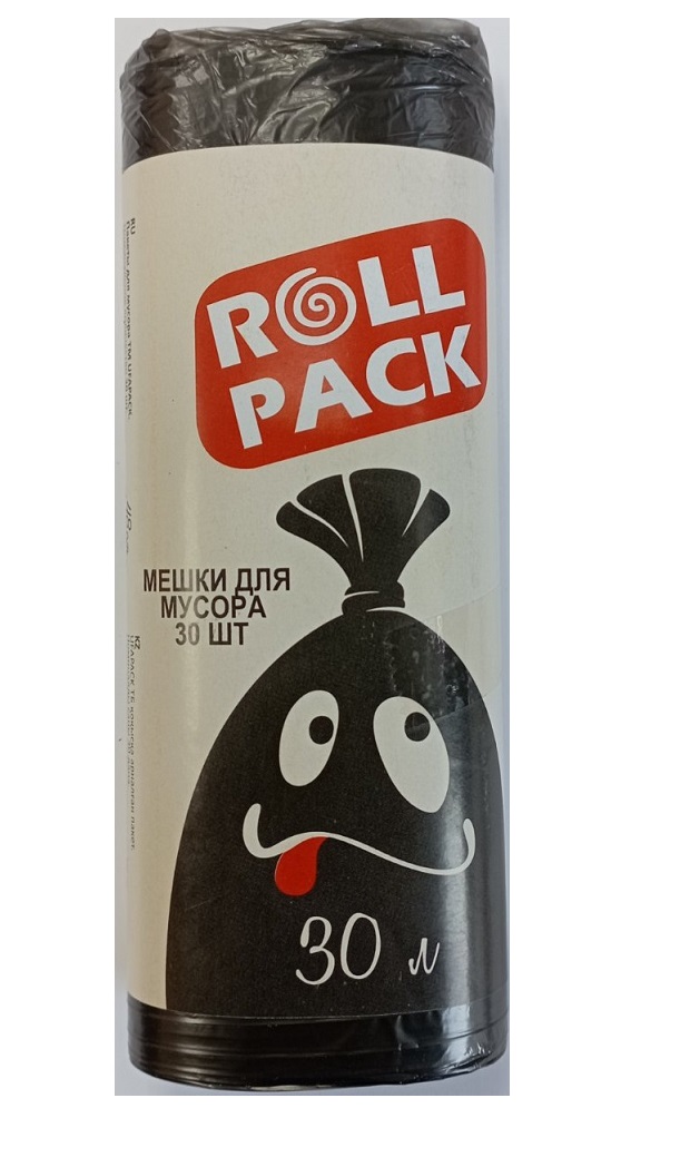 Мешки для мусора РОЛЛ ПАК ПНД 30л черные 5мкр, 30 шт/рулон