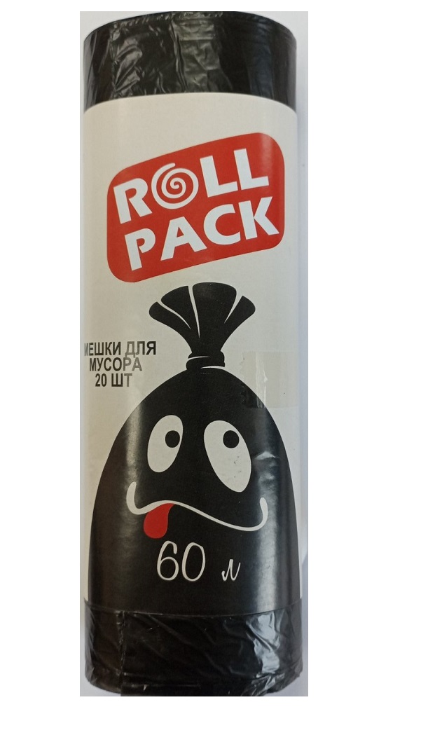 Мешки для мусора РОЛЛ ПАК ПНД 60л черные 5мкр, 20шт/рулон