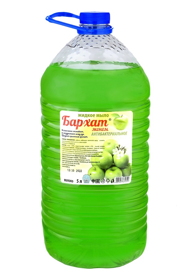 Жидкое мыло Бархат эконом антибактериальное великолепно отмывает, не раздражает кожу рук,придает приятный аромат. ТУ9158-015-21506086-06